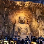 龙门石窟位列世界文化遗产名录,是河南洛阳的景点。以伊河为界,石窟分为西山和东山两部分,东山石窟多是唐代作品,而西山石窟开凿于北朝和隋唐时期,是龙门精华的部分,包括奉先寺的卢舍那大佛和古阳洞中的“龙门二十品”。