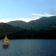 芦林湖位于江西省九江市庐山区海拔1040米的东谷芦林盆地,故又称东湖。芦林湖四周群山环抱,苍松翠柏,湖水如镜,似发光的碧玉镶嵌在林荫秀谷之中,在缥缈的云烟衬托下,犹如天上神湖。此处原是芦草丛生、野兽出没的芦林谷地,介于玉屏、星洲两峰之间。