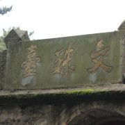 文殊台倚于天池山的西边,临壑而建,顶端平面呈半月形,左旁垒有上台石阶,沿台石叠护拦,下原石室五楹,石木水泥混合结构,说是后人表其双手插石成池立台供“文殊菩萨”像予以纪念。又传文殊骑着青狮空临俯见此山秀丽,惊喜之余不慎跌下,屁股落地印一半月痕迹,文殊随即就地朝天拜日,后人按照印痕围砌了一石台,故也称拜日台。