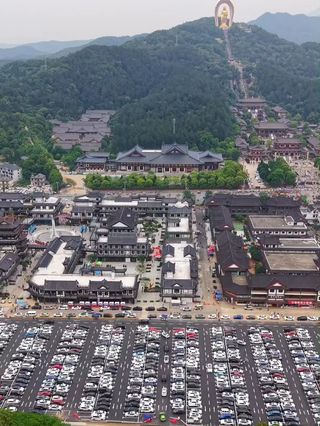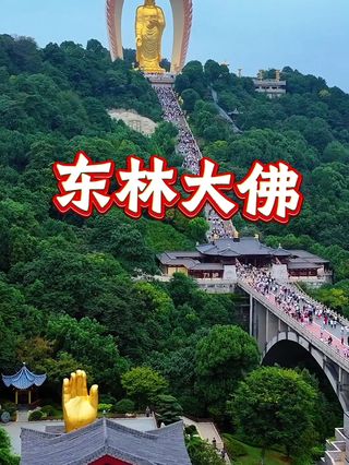 世界较高的阿弥陀佛铜像——48米高的东林大佛,这座金灿灿的大佛屹立在高山之巅,48米高的东林大佛整体造型吸收了龙门石窟等盛唐佛像优点,代表了当代较高水平的宗教艺术精品,中国少有的露天阿弥陀佛铜像。