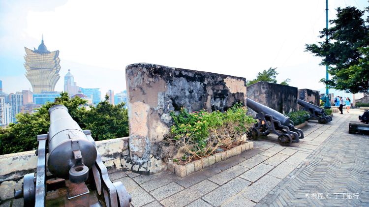 大炮台位于大三巴牌坊附近的柿山上,是澳门重要的历史古迹之一。大炮台曾经作为澳门防御系统的核心,构建了覆盖东西海岸的炮火防卫网。炮台整体是一个不规则的四边形,四个墙角成为棱堡,墙高约9米,可以架设三十多门大炮,可以抵御来自此各个方向的攻击。如今的大炮台成为旅游胜地,前面有很大一片绿地,可以在这里俯瞰澳门全景。