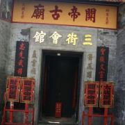 三街会馆建于1750年,所在地原为昔日繁荣市区“荣宁坊”,故其门前之社坛现仍刻有荣宁社字样,且有联云“荣居康乐境,宁享太平年”。庙宇规模较小,藏身在市区巍峨的建筑物之中,见证着当地居民的生活变迁。庙内供奉关帝,塑像雕刻精巧。