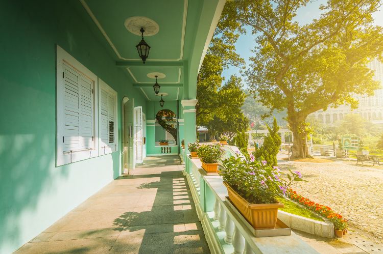 龙环葡韵住宅式博物馆为当地的八景之一,“龙环”是氹仔的旧称,这几幢建筑于1921年落成,曾是离岛官员的官邸,亦是一些土生葡人家庭住宅。当地有关部门将这一建筑群进行重新修建,并作为展示葡国建筑特色的博物馆。从威尼斯人度假村步行到这里,大概15-20分钟,沿着坡道一路下行,五座薄荷绿色的葡萄牙风格建筑很显眼,这便是龙环葡韵住宅式博物馆。其中三幢可以入内参观,由西到东分别建成“土生葡人之家”、“海岛之家”及“葡萄牙地区之家”,另外两间分别是“展览馆”和“迎宾馆”。