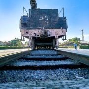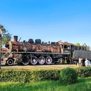火车头广场建成于2004年6月。广场内的火车头是1940年的日制蒸汽机车头,下面的铁轨是1925年苏联制造的43铁轨。所说的43铁轨,是因为它每一延长米是43公斤而得名。这辆火车头的车牌是“1861”号。