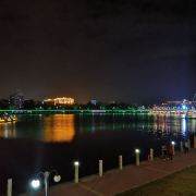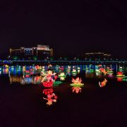 东江生态园林休闲区有一个江滨公园,围绕着小东江而建。休闲区放置了很多水灯,有时也会有喷泉表演。