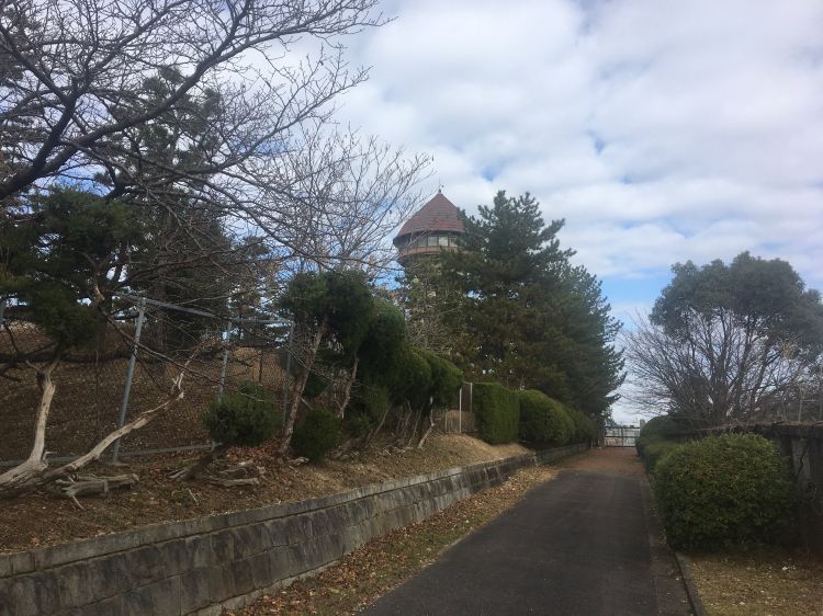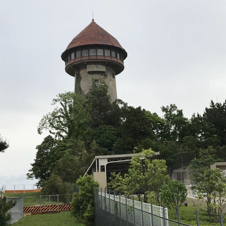 东山给水塔,位于名古屋千种区觉王山的日泰寺附近,高度为37.85米,于昭和5年(1930年)建造。该塔是名古屋较古老的供水塔,曾用作居民日常供水设备,后来变成灾害应急供水设施,在昭和58年(1983年)时改修展望设施,在距地面27米处。远看这个塔像一朵蘑菇,又像一只坐着的猫,十分可爱。水塔一年只有两次开放参观,其余时间不能进入。