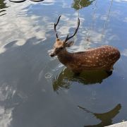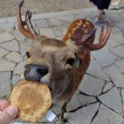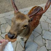 奈良公园位于奈良市区的东侧、春日山脚下。公园中一年四季景色优美如画,在开阔的草甸上生活着成百上千只野生梅花鹿,公园周围还聚集着东大寺、春日大社等名胜古迹。