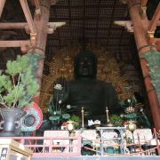 东大寺位于奈良公园北侧,又称大华严寺,于728年由信奉佛教的圣武天皇建立,是日本华严宗大本山,被列入了世界文化遗产。东大寺的大佛殿是世界上大的木造古建筑,殿内供奉着一座约16米高的卢舍那佛像,是世界上大的青铜佛像。作为奈良的地标性景点,这里总是挤满了旅行团和来自日本各地的学生。整个东大寺占地面积很广,除了大佛殿还有许多不容错过的景观,包括南大门、二月堂、三月堂、正仓院等。在参观正殿之前,记得到南大门去瞧一瞧,大门两旁有两尊巨大的仁王像,它们高达8米以上,长相凶猛,雕刻得十分精美,活灵活现。南大门西侧有一处东大寺博物馆,可以了解东大寺的历史及观赏文物。气势磅礴的大佛殿从南大门西侧进入,就能到达东大寺的正殿——大佛殿,也叫金殿。站在大佛殿前,你一定会感受到它的震撼,气势磅礴且透露着古朴韵味。现存的大佛殿建造于1709年,虽为世界庞大的木造古建筑,但它大概只是原有建筑的三分之二大。走进大佛殿,便能看到10多米高的卢舍那佛青铜像,视觉冲击力很强。大佛历经几个世纪的沧桑,其头部曾数次被盗,仔细观察会发现头和身体的颜色略有差异。殿内还供奉有虚空藏菩萨、如意轮观音等。绕着佛像走一圈,你会看到一根木柱的底部有一个洞,被称为“佛祖的鼻子”,据说如果能从其中穿过,就能得到平安喜乐。通常这里会有很多小孩子排队等候,如果大人也想试试看会比较困难,好在有工作人员会把你拉出来。此外,你也不妨到东大寺模型前去研究一番鼎盛时期的寺院之景。登高远眺走出大佛殿,去往东部山顶的二月堂,在那里可以俯瞰奈良的景色,尤其黄昏时美。从大佛殿的出口外左转,沿着围栏穿过池塘,再沿着石头路步行上山,一路的风景十分迷人。很快你就能抵达山顶的平台,那里就有二月堂。再往南走几步是三月堂(法华堂),这是东大寺古老的建筑,大厅里收藏了一些奈良时期的精美雕像。当你走进东大寺或在寺中散步时,到处都能看到悠然自得的鹿。若是在春秋两季到此,一边漫步一边欣赏樱花或红枫也是十分雅致的体验。
