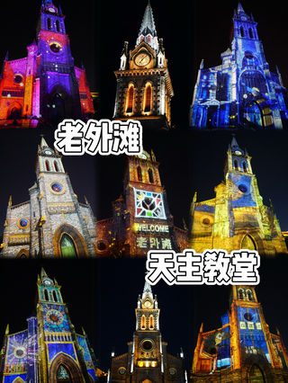江北天主教堂位于三江口北面,是宁波的教堂之一,也是老外滩区域显眼的地标。教堂沧桑的哥特式外观,以及背后的一面断壁,是游人和拍婚纱照新人们镜头下的焦点。这座教堂的历史可追溯至清朝,见证了宁波这座港口城市传教活动的历史。教堂前的广场上建有一座不大的喷泉,不少摄影师会选择以喷泉为前景拍摄教堂的全貌。夜晚教堂的灯光亮起,显得庄严而宁静,更是捕捉夜景的好时机。