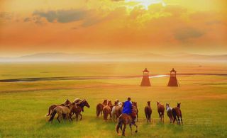金帐汗蒙古部落,位于呼伦贝尔草原莫尔格勒河畔,距离呼伦贝尔市区约40公里。这里是“天苍苍,野茫茫,风吹草地见牛羊”的呼伦贝尔草原腹地,历史上很多游牧民族都在这里成长和壮大。当年这里是游牧部落的天下,如今游客们在这里可以感受到浓浓的游牧部落文化。