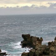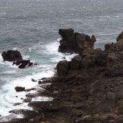 猫鼻头公园位于恒春半岛东南岬,猫鼻头名称的由来,是因为岩岸旁一块外形像蹲坐猫的突出珊瑚礁岩,这里长时间受波浪侵蚀、反复干湿、盐粒结晶、砂粒钻蚀等作用,因而产生崩崖、壶穴、礁柱、层间洞穴等奇特景观,这里也是欣赏台湾海峡海岸线的理想位置。