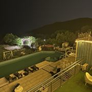 背山面海,远离尘嚣,景色宜人湛蓝的户外泳池,远处的广阔海景,高颜值,高品质,这里成为潮人圈里的网红打卡地,城市之边,一山之顶,简直就是一个避世仙境,海风吹拂过来,仿佛真的身处希腊圣托里尼。前面是广阔的海,左边是秀丽的山,身后是童话城堡般的民宿,独成一处美景。无论从哪个角度,都像是从童话里走出来,只等你来体验