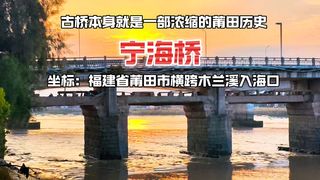 宁海桥位于莆田市涵江与黄石两地交界处,木兰溪下游的入海口,古为宁海渡,故名宁海桥。初建于元代元统二年(1334年)。由于溪海在此处汇流,工程十分艰巨,自元至清,300多年间六建六圮。到清雍正十年(1732年)第七次修建,历时15年才建成功。是一座势如长虹、凌空飞架的大石桥,雄伟壮观。