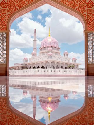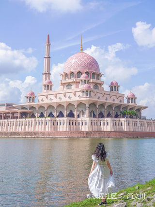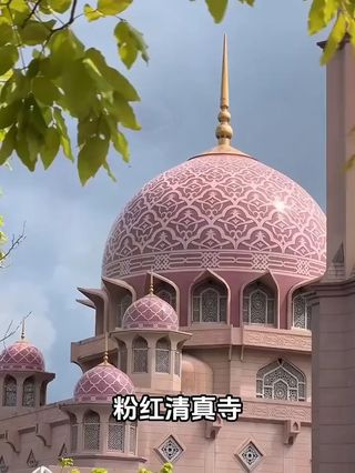 粉红清真寺位于马来西亚新行政中心布城(Putrajaya),整座寺有四分之三建筑在布拉特湖上,也被人们称为水上清真寺。因其顶部花岗石砌成的粉红色屋顶,视觉效果超棒。