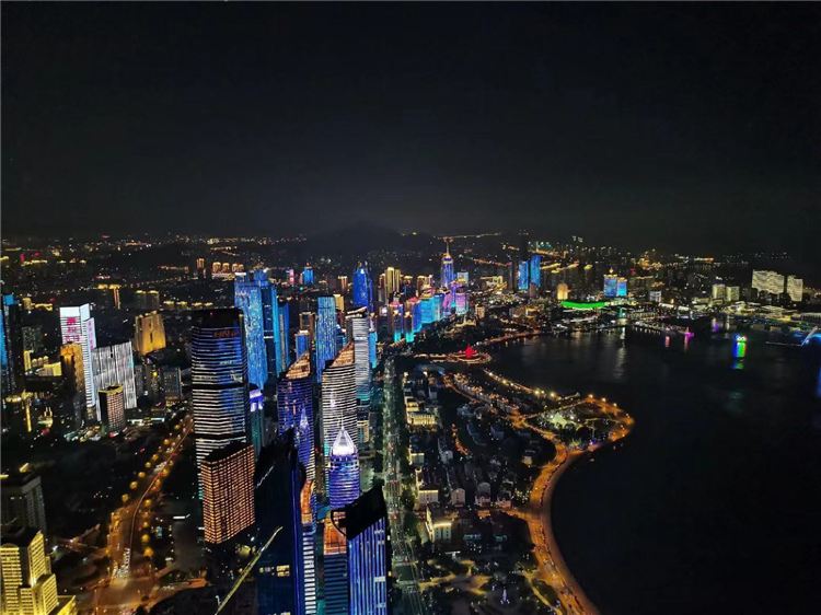 海天中心城市观光厅是山东省超高层垂直建筑之上的高空观光平台。在这里,向西可揽胜八大关老城区红瓦绿树,向东承接新城区璀璨繁华,360°俯瞰壮美海景、山景、城景,全方位感受身处"天空之城"的独特体验。其内部设置的透明观景区、沉浸式体验区、多媒体展示区与空中水吧等多个功能空间,将内部游览体验与外部自然景观融为一体。站在369米之上的城市观光厅,可以看尽因海而生、向海而兴的魅力青岛在时间长河中的风貌变迁与发展动线。随着观光者的漫步,不同姿态的青岛都将尽收眼底。