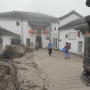 百岁宫位于池州市东南50公里处的九华山上,始建于明代,屡有毁建。庙内供奉着明代无瑕和尚的肉身,因其活到126岁才圆寂所以寺庙得名“百岁宫”,无瑕圆寂后尸身一直不腐,是九华山现存古老的肉身,所以百岁宫是到九华山必游的寺庙之一。百岁宫的主体建筑白墙黑瓦,沿着山崖呈南北走向狭长型排布,好似城墙,。跨过南边的山门,是放有香炉的院子,北边即大雄宝殿,殿门上的牌匾有黎元洪写的“钦赐百岁宫护国万年寺”几字,由大雄宝殿的侧门可进入肉身殿。