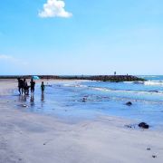 位于北戴河海滨风景区的中心地带,这里沙软潮平,分布着北戴河大多数的海滨浴场,是游人多的地方。中海滩景区以老虎石公园为中心,老虎石是散布在海边的一组形态各异的礁石群,登上老虎石,可以欣赏潮起潮落的壮阔景象,每到涨潮之时,老虎石大部分浸在水中,温润的海水近在咫尺,给人一种奇异的感受。中海滩沙滩面积很广,夏日在沙滩上嬉戏游乐,看细细的沙粒渗入指缝,实在是一项不可多得的享受。