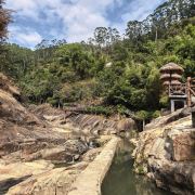 青岚怪臼谷国家地质公园位于潮州市饶平县樟溪镇,是粤东唯一的国家级地质公园,也是潮州新八景之一。这里有两亿年前火山运动和冰川侵蚀造就的“三怪”奇观,即怪臼、怪洞、怪石。3000多个冰臼星罗棋布,“九层怪臼”堪称“千臼之王”。神秘的地河洞,洞中有臼、臼中有洞,流水千年不枯。此外,还有象形石林、叠泉瀑布等景观。公园内的地质博物馆,展示了丰富的矿石标本和恐龙骨架。