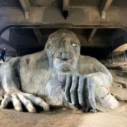 费蒙巨人位于美国西雅图,建于1990年,是一座建在天桥下面的巨型雕像。巨人高5.5米,一只手攥着石雕汽车,另一只手撑地,像是一只从地底下爬出来的怪物,每年都吸引着成千上万的游人前来合影。