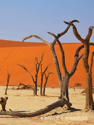 死亡谷靠近索苏斯维来,地处西南非洲纳米比亚西南部纳米布-诺克卢福国家公园内的一个观光景点,是一片粘土洼地,其特征是深色的老树枯死,与白色的洼地形成鲜明对比。这片洼地形成于措查布河泛滥之时,丰富的水量使树木得以生长。然而,后来气候发生变化,沙丘侵蚀了洼地,阻挡了河流流入该地区。据估计,这些树木约有900年历史,但由于气候干燥,它们尚未腐烂。