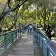 徐家汇公园位于徐家汇广场东侧,北起衡山路、南至肇嘉浜路、西临天平路、东近宛平路,占地面积约7.27万平方米。徐家汇公园的设计以自然理论为指导,以绿为主,特别突出与原有徐家汇繁华商业圈以及衡山路建筑风格的结合。徐家汇公园有三大看点:首先原大中华橡胶厂的那根烟囱,烟囱一旦通电打开,光导纤维发出的光亮透出外罩,就像是烟囱顶端冒出的白烟,弥漫整个夜空,煞是好看。然后是公园整体布局呈上海版图状,公园湖设计成黄浦江形状。还有就是公园的时光通道,公园建造了一座长约200米的观景桥,站在桥上,美景尽收眼底。