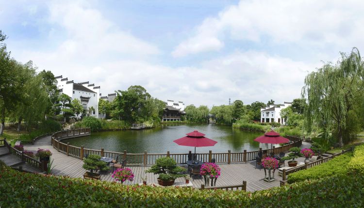 闻道园位于罗店镇东北角,是一处以保护农村古建筑为主的文化休闲园。里面有从安徽等地拆搬过来的徽派建筑,还收藏了不少珍贵的奇石,同时配有餐厅和会所。由于离市区较远,来到这儿的游客多是闲暇时候来散心,或者宴会聚餐。景区内的主要景点集中在大门左手边,不过通常会从右边绕过去,沿路可欣赏闻道园中的园林景观。走过八卦荷花池,再往前不远便是奇石馆,这里是整个闻道园值得一看的地方,里面有一桌满汉全席,一大桌石头菜让人垂涎欲滴;一大块据说价值过亿的和田玉,是这儿的镇馆之宝。此外,还能看到一窝罕见的恐龙蛋化石,以及许多稀罕的宝贝,喜欢石头的游客不要错过。出奇石馆,过圣旨牌坊往前走便是徽派建筑群,徽州雕花楼、武状元楼等徽派建筑经过重建和改造焕然一新,配合着园中的小桥流水,别有一番风味。进士第被改造为闻道园酒家,四周为玻璃阳光房,可散点一些面条、馄饨之类的小食。