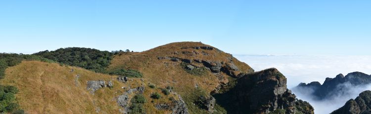 船底顶海拨高1586米,船底顶徒步路线被称为是“广东自虐之作”线路,沿途几乎涵盖丛林、草坡、碎石坡、巨石阵、溪谷等各种山野地貌和植物群,风光特别。
