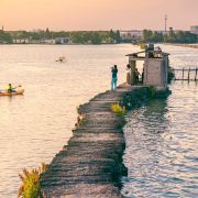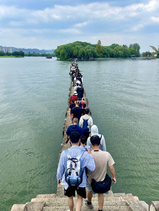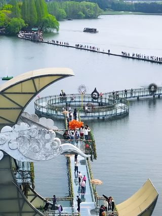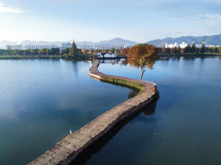 鉴湖位于绍兴柯岩风景区内,是绍兴的“母亲湖”,不仅风光美,绍兴老酒就是用鉴湖的水酿造的。由于水质特殊,鉴湖的水酿出的酒入口绵柔,尝一口正宗的绍兴酒也是许多人来到这里的理由。游览鉴湖需购买绍兴柯岩风景区联票,湖中几个小岛上有东汉笛亭、南洋秋泛、五桥步月、葫芦醉岛等景点。可以从柯岩景区西面入口步行上岛,全程步行游玩,但这样比较累,坐景区免费画舫泛舟鉴湖上也是很不错的体验。比较常规的玩法是先游览柯岩景区,乘画舫来到鉴湖,游玩过后继续乘画舫去到鲁镇。出柯岩进入鉴湖,首先到达的便是东汉笛亭,一座仿汉建筑,能看到一些竹雕、竹刻的工艺品。旁边的百船码头可乘免费画舫进入鉴湖,也可以包一艘乌篷船,在晃晃悠悠的小船上感受鉴湖的韵味(需另付费)。若乘画舫,首先来到五桥步月,这边其实是个小公园,有五座桥,环境不错。此处大亮点是湖面上的一道笔直的长堤,另一端是鉴湖的主要景点葫芦醉岛。这道长堤是一条古纤道,很精致而且保存得很完好,人们雅称它为“白玉长堤”。漫步在长堤上,有种和鉴湖融为一体的感觉。葫芦醉岛是鉴湖景区大的岛屿,除了形状酷似一个大酒葫芦,连岛上的景点也都与绍兴美酒相关。你可以在“投醪劳师”雕塑前回味越王勾践卧薪尝胆后,投醪劳师犒慰三军的豪情。而岛上主建筑壶觞楼则是一座酒文化博物馆,可通过图文和陈列了解黄酒的制作工艺、历史。当然,不容错过的要数品酒厅了,别忘了来这儿免费品尝鉴湖的水酿造的地道绍兴黄酒,绍兴花雕不会让你失望。如果有亲友喜欢喝酒的,也不妨买一些回去。岛上有画舫往返鲁镇,鉴湖游玩结束后,乘船去鲁镇体验鲁迅笔下的绍兴水乡,又是另一番风味了。