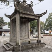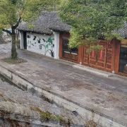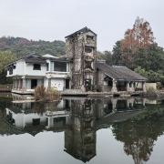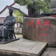 鲁镇位于绍兴柯岩风景区内,是依照鲁迅笔下的“鲁镇”还原的主题公园。在这里你会看到许多熟悉的场景:鲁家祠堂、奎文阁、阿Q栖身的土谷祠等等,可以一路走一路回忆作品中的桥段,是种特别的体验。鲁镇被流水大致分为三部分,景区的入口,迎面是一座高大的石牌坊,上书“鲁镇”二字,一旁是鲁迅先生坐在藤椅上的铜像,颇有“横眉冷对千夫指,俯首甘为孺子牛”的神韵,也是鲁镇的标志。中轴线上是民俗风情街、双面戏台,左手边是赵府、土谷祠、奎文阁,右手边有静修庵、百匾馆、鲁府(鲁家花园)、鲁家祠堂、当铺、钱府(狂人府)等,各部分之间有小桥相连,河道中不时有乌篷船划过,颇有情致。鲁镇不大,顺着标识步行游玩即可。首先来到的是民俗风情街,这里是鲁镇繁华的地方,沿街许多特色小店,卖一些古玩玉器和乌毡帽之类的小玩意,街上还有游客可以参与的“投球入樽”、“套圈”等绍兴特色的游戏,感兴趣可以去玩一玩。风情街尽头是鲁镇的中心,双面戏台,游客可以在这里看社戏、品黄酒(社戏表演时间参考当日戏台附近的公告牌)。戏台往左来到阿Q的栖身之所土谷祠,再往里走便是鲁镇较高的建筑奎文阁,登上楼去,可以俯瞰鲁镇全景。过桥来到钱府,这里按照《狂人日记》里的情节,布置了一个“吃人”而扭曲的环境,尤其是走进蠕洞里,好像走进动物的腔肠内部,有种被封建礼教吞噬的即视感。从钱府开始往景区大门方向走,沿路是当铺、《祝福》中的鲁家花园、阿Q调戏小尼姑的静修庵等等,过静修庵前的石板桥,便出了鲁镇的广场了。除了这些建筑,鲁镇的街上穿着戏服扮演鲁迅笔下角色的演员们也是鲁镇的一道风景,阿Q油腔滑调地装各种怪相,祥林嫂挎着讨饭篮拄着竹竿在街上四处游荡……让人感觉真的穿越进了鲁迅的故事里。游客多时,他们就扮演起自己的角色,念起经典台词来逗游人开心,引得游客纷纷掏出相机拍照。柯岩风景区有柯岩、鲁镇两个入口,可以先游玩鲁镇,乘画舫前往葫芦酒岛,然后去到柯岩景区看天工大佛。或者从柯岩进入景区,沿柯岩-鉴湖-鲁镇游玩。