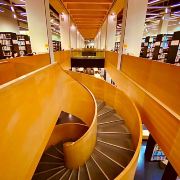 深圳图书馆位于深圳市行政文化中心区内,风景秀美的莲花山前,面向公众开放,以满足读者需求为宗旨。其建筑造型也颇为精巧,由日本建筑师矶崎新先生主持设计,图书馆南侧的三栋黑色放射性建筑,形状好比三本翻开的图书,而东面柔美变化的水幕和三维玻璃曲面犹如委婉韵律的竖琴,从莲花山鸟瞰,阳光下熠熠生辉,可谓刚柔并济,煌煌大观。