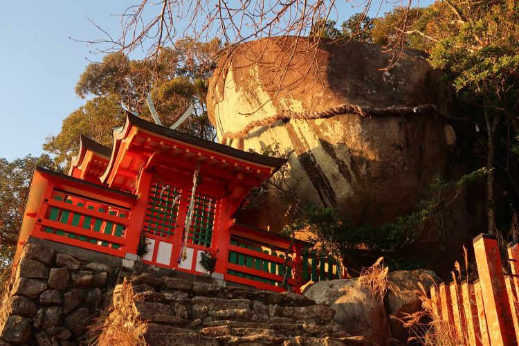 镇守于权现山的半山腰处,传说是熊野三山众神灵降临之地方,为熊野速玉大社的元宫。受人们信仰的巨岩琴引岩(即为神社所供奉的神体),位于有天磐盾之称的断崖绝壁上,要登上神社,先要攀登位于熊野古道中陡峭的五百多级石阶才能抵达,但人们深信,唯有克服了一路上所有的苦难,才可求得熊野众神灵的庇佑。