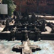 吴哥遗址微缩景观公园位于暹粒公园东面,是当地雕塑艺术家的杰作。里面有吴哥窟、巴戒寺、女王宫的微缩景观,能清楚的看到这些建筑的全貌。公园门口还摆放着吴哥的雕塑,大门上有女王宫的门楣,两旁各有一个石狮,象头神,力士,雕工精湛,栩栩如生,十分精美。
