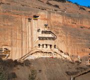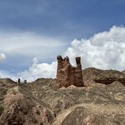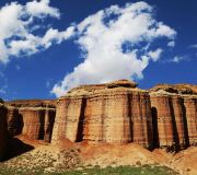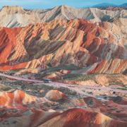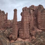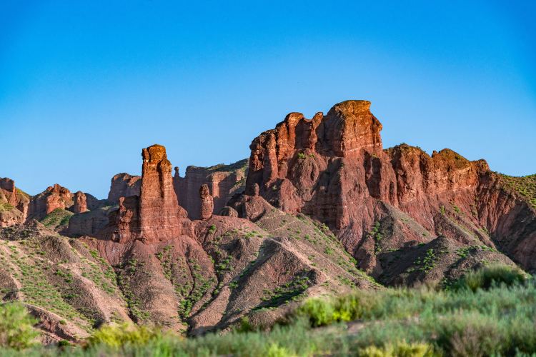 冰沟丹霞景区位于张掖肃南裕固族自治县,是以赤红的宫殿型丹霞地貌为主的自然风景区。这里与不远处的张掖丹霞地貌景区(又称七彩丹霞)相比,丹霞的颜色比较单一,变化不大,但很大的特色便是这里丹霞地貌的形状非常独特,有各种风格的造型,规模也比较壮观。而且,这里开发较晚,与七彩丹霞相比游人不多,也少了一份喧闹,可以安静的观景游玩。冰沟丹霞景区的面积很大,景区内开发的部分大约有10公里,在景区里有观光游览车,私家车辆不能进入,游客购票进入景区后可以乘坐观光车游玩。观光车会停在小西天和大西天两处,每一处都有一个大的观光区域,游客需要沿着观光步道步行到山上的观景台观看和拍摄。观光车为循环发车,可以在每个区域尽情游玩后乘坐后续车辆,游览整个景区大约需要半天时间。观光车停留的第一个点是小西天区域,这里有1公里左右的步行栈道,可以到观光台上参观,游玩这个区域大约需要1小时时间。这里有神驼迎宾、楼兰商驼、大地之根、神将守望和侍女拜佛等几处主要的丹霞景观,都是以形状命名,非常神似,每一处都可以拍出漂亮的照片。步行到栈道尽头的观景台后可以俯瞰周围赤红的丹霞景观,拍摄全景的大片。游玩后需要原路返回到观光车停车点,乘车前往下一个区域。第二个区域便是大西天区域,这里的面积更大,有两公里多的栈道和2.5公里左右的公路,可以步行走一个环线,大约需要2小时时间。如果时间紧张也可以从停车点仅步行到观景台就返回,不到一个小时即可。大西天是景区内的精华区域,主要的景点有极乐宫、婆娑宫、琉璃宫、佛母金刚、左旋法螺、金驼情深等多处。这一片丹霞的单个规模更大,每一处都雄伟壮观,而且颜色赤红,是摄影家们热爱的拍照胜地。