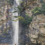 太白山青峰峡森林公园距太白县城以东12公里的衙岭(五里坡)下、宝鸡75公里、西安140公里、汉中160公里,连接关中与汉中的姜眉公路从公园门口经过,交通十分便利。园内海拔介于1340—3400米之间,空气清新。公园景观有“九潭十八瀑七十二景”,分为四大景区:即临芳墅景区(知名景点有千年古杉、睡佛山)、雾瀑涯景区(知名景点有青凤飞瀑、仙桃山、骆驼峰等)、神女峰景区(知名景点有神女峰、将军探路、石龟背蛋、雄鹰展翅等)、鳌山景区顶部为秦岭主峰鳌山和四十里跑马梁,可见第四纪冰川地貌,瀑布、石海、石河广布,景象壮观独特。人文传说历史悠久,有汉皇帝刘秀之“四十里跑马梁”,也有唐王李世民之妹为爱情献身的“舍身崖”,更有神女峰、睡佛山、娘娘庙之优美传说,点缀在自然景观之间,辉映成趣。园内动植物资源丰富、种类繁多、起源古老,森林植被垂直带谱十分明显,现有野生植物2800余种,野生动物1700余种。珍稀野生动物有:大熊猫、金丝猴、羚牛、细鳞鲑等栖息在这里。