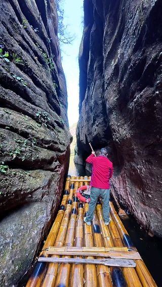福建泰宁九龙潭里,山山而川、谭水悠悠,山泉水汇聚而成的峡谷群,天然的丹霞地貌峡谷之中,怪石林立、风光