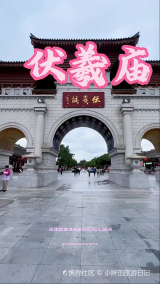 伏羲庙本名太昊宫,俗称人宗庙,始建于明成化十九年至二十年间(1483-1484年),前后历经九次重修,形成规模宏大的建筑群,是中国国内有伏羲塑像的伏羲庙。伏羲庙临街而建,院落重重相套,四进四院,宏阔幽深。庙内古建筑包括戏楼、牌坊、大门、仪门、先天殿、太极殿、钟楼、鼓楼、来鹤厅共10座。整个建筑群坐北朝南,依次排列,层层推进,庄严雄伟,具有鲜明的中国传统建筑艺术风格。由于伏羲是古史传说中的第一代帝王,因此建筑群呈宫殿式建筑模式,为全国规模大的伏羲祭祀建筑群。每逢正月十六伏羲诞辰日,周边群众扶老携幼,纷纷前来伏羲庙朝拜祭祀“人祖爷”。一时宝烛辉煌,香烟缭绕,钟鼓鸣天,善男信女异常虔诚,庙内充满着一派庄严肃穆的景象。