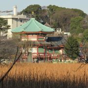不忍池是位于上野公园中,池中央有祭祀辩才天女的“弁天堂”,栖息着鸭、鹈等许多鸟类。池内生长着大片莲花,夏季,整个池面被莲花所覆盖,如遇雨天,细雨中沉甸甸的绿色和荷叶上的水珠更添一份跃动的活力。