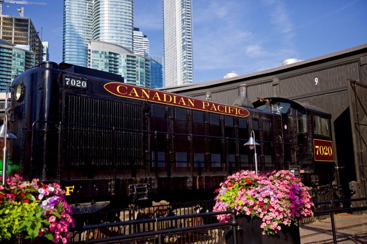 多伦多扇形车库公园创建于1997,在大多伦多会议中心的南部。这里过去是加拿大太平洋铁路修理火车头的车库,在扇形的库房里通过铁轨,通到前面的圆形转盘,便于车头到各个方向的轨道,许多机务段都有类似的建筑。