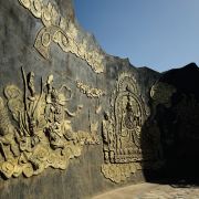 火焰山景区位于吐鲁番市东侧连霍高速旁,距离市区车程约30公里,是一处以火红色的赤褐砂岩地貌为主的景区。这里历史上是高昌古国的所在地,而在传说中,这里是《西游记》唐僧师徒借芭蕉扇用以扇灭大火的火焰山所在地,是很多游客到吐鲁番旅游的好去处。火焰山景区分为地下、地上两个部分,游玩一圈下来大约需要1-2小时左右。一般游客来此都会先前往地下部分,这里是一座长廊式的展厅,展厅的棚顶被设置为天空样子的灯饰,很有特色。展厅内有与高昌古国相关的人物雕像和介绍等,都可以参观一下,了解高昌古国的历史。在展厅里还有纪念品商店和餐吧等,可以根据个人兴趣进入消费。参观完地下景区后即可前往地上部分,地上部分的景观便是火红的岩石和山崖地貌,十分壮观,非常适合拍照。地上的广场上有很多西游记主题的雕塑,还有名为金箍棒的巨大温度计。夏季的火焰山景区天气特别热,温度可高达58度,而且气候十分干燥,此时来此游玩一定是一次特别的体验。但是游玩时要注意多带饮用水,并且要准备遮阳帽、墨镜、头巾等防晒防尘装备,以免中暑。