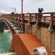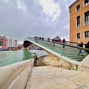 在威尼斯400多座桥中,除了叹息桥之外,里亚托桥很是有名。它位于威尼斯S型大运河几乎正当中的位置,建于13世纪,原本为一座木桥,之后改为大理石桥。里亚托桥长48米,宽22米,离水面7米高,桥两头用12000根插入水中的木桩支撑。桥身全部用白色大理石筑成,桥中间是一个造型优美的亭阁,桥身有不少精美的雕刻,可以说大桥本身就如同一件精致的艺术品。