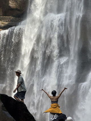 景区中知名的应该是赤水丹霞旅游区·大瀑布,也被称为十丈洞瀑布,位于贵州省赤水市南部。瀑布悬挂在红色丹霞悬崖上,比黄果树瀑布还要高8米,因此来景区游玩,瀑布是必体验的。游客走过景区大门有一条岔路,一边是游客步行的路,另一边是电瓶车走的公路,可自行选择。步道的路上可以一路欣赏丹霞地貌,呼吸新鲜空气。走到底就是赤水丹霞旅游区·大瀑布了,壮美的瀑布倾泻入潭水,溅起的水花晶莹剔透,发出的瀑布声轰鸣震耳,运气好的话在阳光下还能看到彩虹。攀上潭水中的巨石,就能近距离感受瀑布。