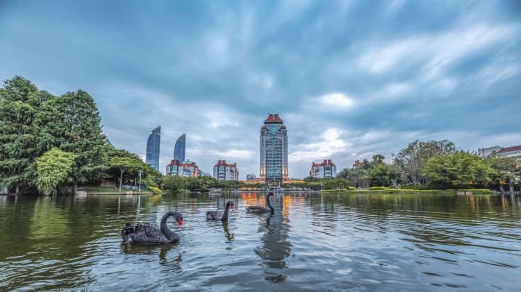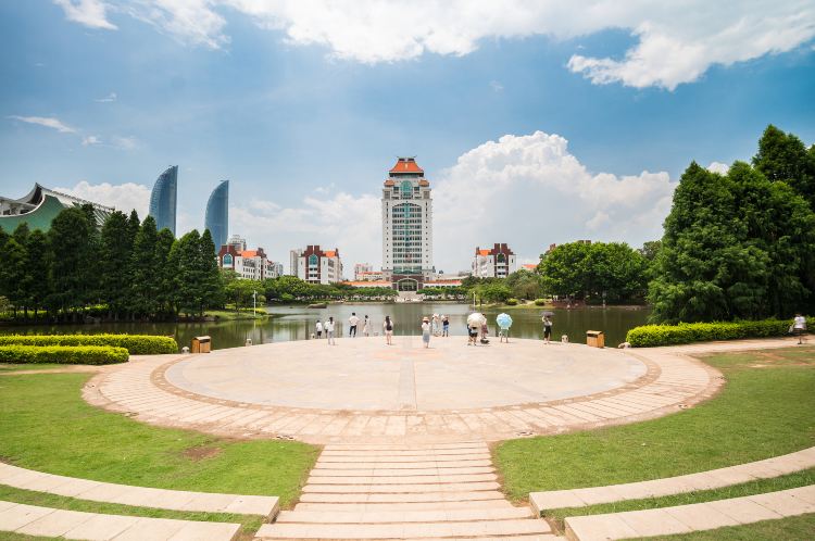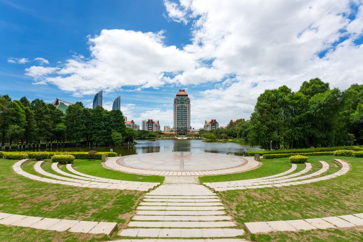 厦门大学颂恩楼位于厦大芙蓉湖畔,颂恩楼群是厦大气派的建筑楼群。在颂恩楼的楼顶可以360度看到芙蓉湖的景色。这里也适合拍照,一主四从的建筑群,从主楼的顶层可以看到厦大的全景。