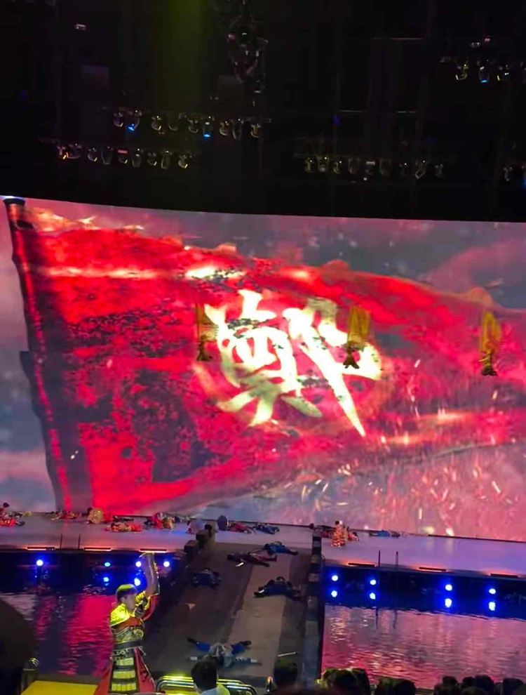 神游华夏演艺——闽南传奇,是山东华夏文化旅游集团斥巨资在福建厦门倾力打造的惊世巨作,实景搬进室内,有山有水有树木、有房有船有码头,令人叹为观止,剧场上方数万平米的巨大穹顶为实景遮风挡雨又拓展了表演空间。众多外媒惊艳其丰富的想象力及世界较早创立水陆空360度全方位演出和观看方式,可以媲美国际级任何高端演艺秀,彻底打破拉斯维加斯演艺航母的神话,成为世界演艺历史上一次颠覆性的革命。 大型室内实景秀《闽南传奇》分为六幕,故事散点式展开,横贯舞台的巨大山体在震耳欲聋的音乐中向两侧裂开,首先吸引眼球的是大、小恐龙的幽默表演和雨林冰川的变化喻意海进海退、潮起潮落的沧桑巨变,栩栩如生的机械白鹭展翅9米迎面飞来喻意鹭岛的形成;音乐变换之中水面升起城墙,激烈的海战、寸土不让的攻防大战,使人感受到海峡两岸同仇敌忾的骨肉情、共筑盛世华夏的中华梦;深情的下南洋歌声从浪花中飘来,讲述着亲人的别离、故乡的思恋,下南洋途中遇到的火山喷发、岩浆倾泻、盗匪洗劫、海啸狂风、人与大自然的博弈惊心动魄,后续而来的闽南儿女为海上丝绸之路开商埠建码头付出的艰辛,用血汗谱写了爱拼才会赢的奋斗史;灯光聚焦,特技演员从30米的高空跳水刷新了世界演艺相关的记录,将场内气氛推向了高潮,让观众屏气凝神、兴奋惊叹。