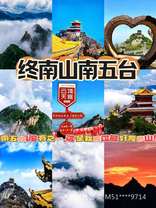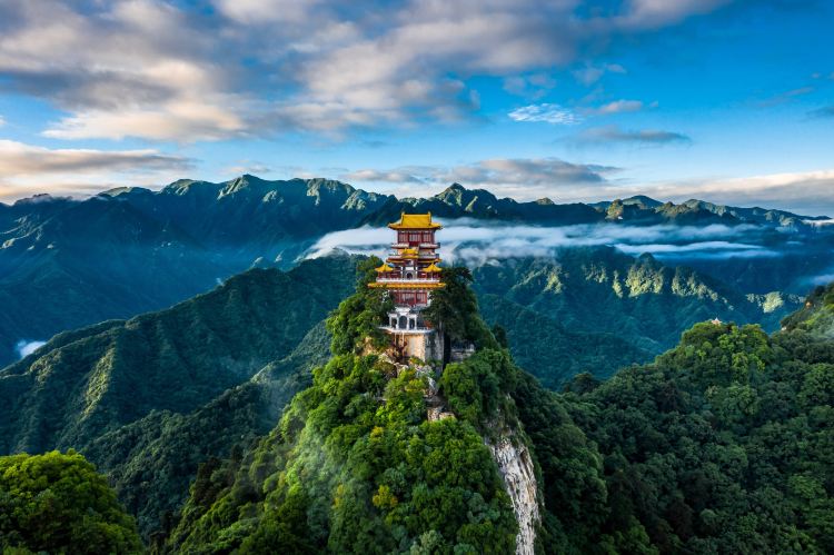 终南山南五台景区位于终南山岭,这里群山起伏,自古为佛教名山与避暑之地。古称太乙山,为“终南神秀之区”。山上有清凉、文珠、现身、灵应、观音五峰,因其位于长安城以南,故名南五台。