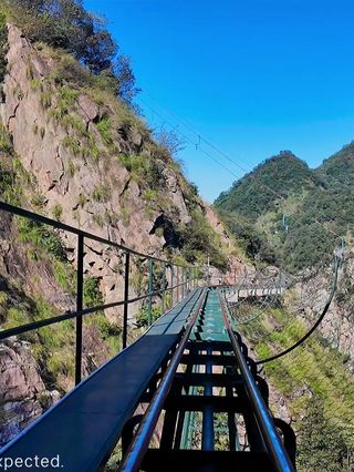 石根山景区位于广东广西交界处,在山脚仰望山体,尤如一根顶天石柱,直耸云天。山体海拔988米,虽不算高,但登山道蜿蜒崎岖,风景奇秀。倘徉山间,寻幽探胜,沿途奇峰怪石不断,一派原生态之景。除了悬崖栈道之外,这里的玻璃观光平台更是独具特色,它立于悬崖之上,又伸至悬崖之外,是观景平台,若是雨过天晴,云海缭绕之景更是让人惊叹。