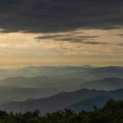 五龙山位于赣皖两省交界,主峰1580米,山高地沃,雨量充沛,山体宽厚,绵延小山如诸候朝圣般圃伏在周围,终年云雾起舞,壮如五龙,故得名。春天的五龙山,郁郁葱葱,山花烂漫,站在山顶俯视山脚的徽州村落。金黄的成片油菜花,曲曲的河流,流入如天镜一般的高山平湖。