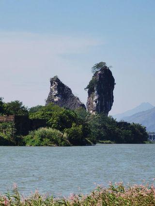 鱼王石是阳春八景之一漠阳古韵的一个景点。位于广东省阳春市春城镇北面黎湖桥石村,拔地挺立,象一条冲天而起的黄鱼,屹立于漠阳江边。鱼王石和春湾石林、通天蜡烛一样,成为了影视外景的三大拍摄基地。一座石山双峰耸立,在两峰相连下面横穿一洞,远看象两座石山并立,当中横架一桥,故又称桥石。鱼王石像一个美丽的盘景点缀在江边,给漠阳江增色不少。清代阳西才女王若霞到此游览时曾写下很美的诗句:何年星坠北江滨,砥柱中流可问津。异卉环岩惊过客,雄文铭石认骚人。谁言碧海三山岛,别是桃源一洞春。板鼓河图时出殁,鱼王名号绝无伦。摄影爱好者在这里拍到了很多美丽的风景,如鱼王含珠、鱼王晚霞等美景。