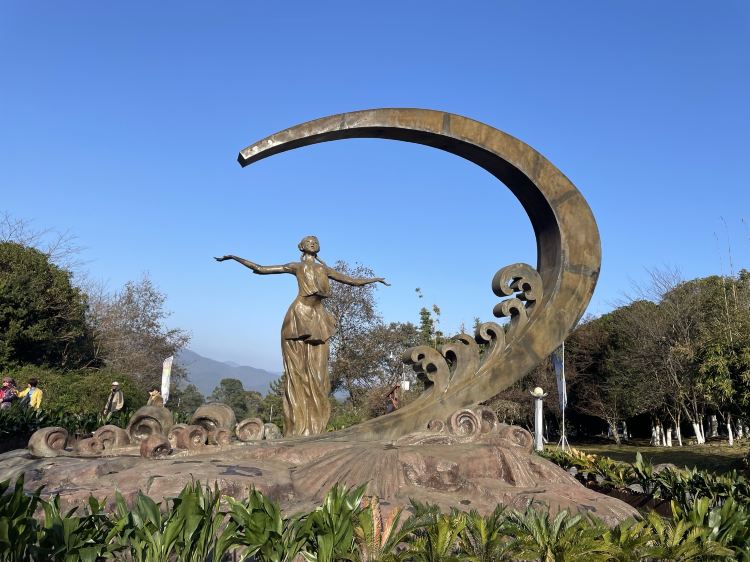云姑沐月是依据南宋孝宗皇后被选入宫前的村姑形象雕塑而成。夏云姑(公元1133年-1167年),明月山夏家坊人,小名明月,天生娇美,善良聪慧。南宋绍兴19年(公元1149年)初选入宫被宋高宗皇后看中,选作贴身侍女,后由皇后做主许配给皇太子赵昚,封为齐安郡夫人,隆兴元年(公元1163年),宋孝宗赵昚继位,夏云姑被封为贤妃,隆兴二年被册封为成恭皇后。为纪念明月皇后,当地人将云姑出生地旁的大山称为明月山。