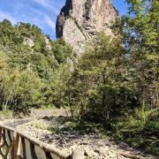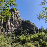 石桅岩位于岩头东北方向的鹤盛镇,是楠溪江不容错过的景点之一。亿年前的火山活动留下一座306米高的孤峰,船桅一样的造型,傲然俯视周边群峰,微红色的岩石在不同的角度变幻成不同的形态。游人在此可乘船观景,也可走上山腰间的栈道,融入青山碧水之间。