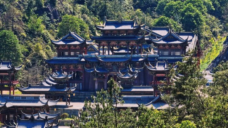 九泄潭风景区因九个飞流而下的瀑布而得名,山体多为岩石,在雨水的冲刷下展现出黑色,这里植被茂盛、景色秀丽,是人们赏景游玩的好地方。